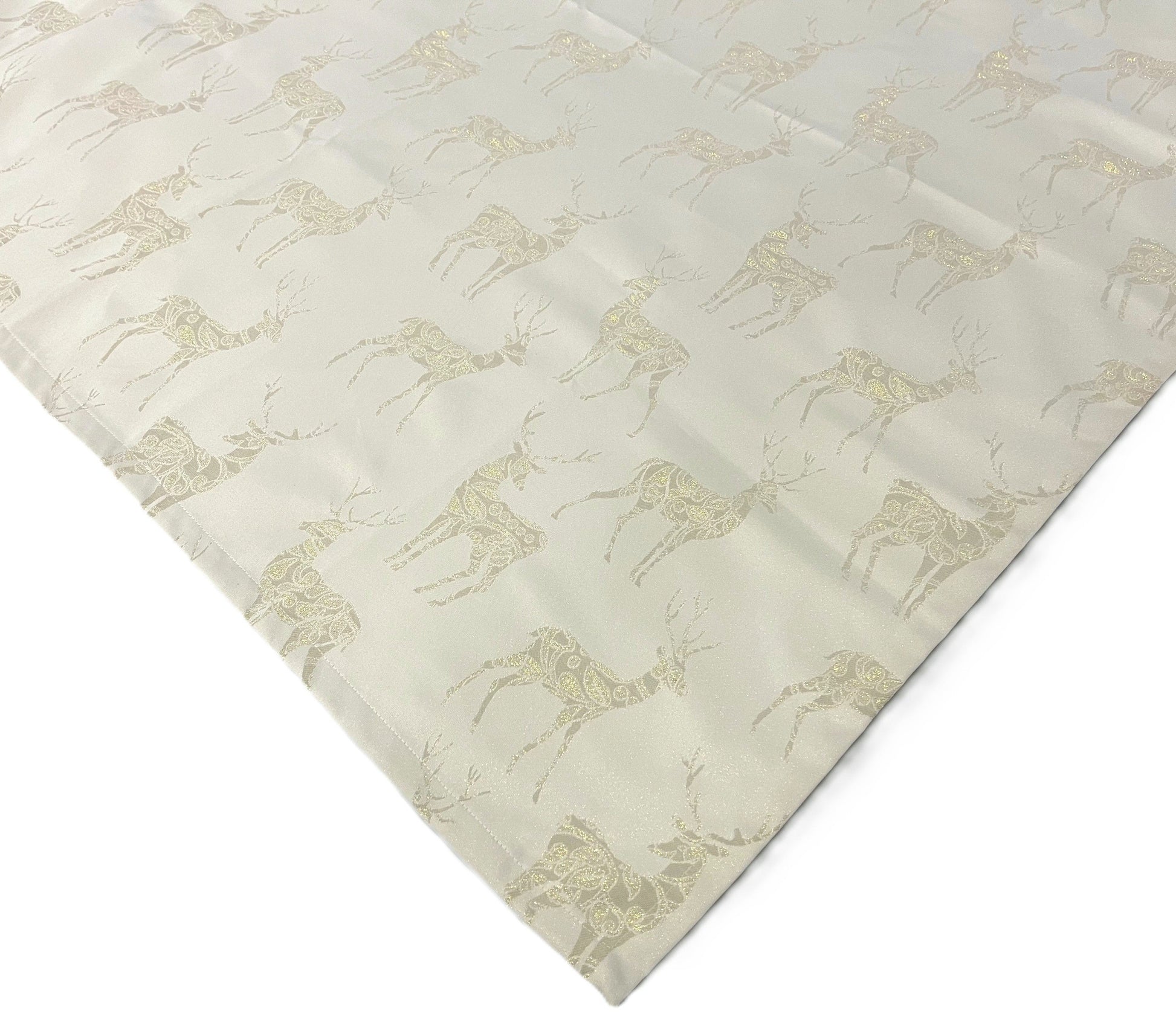 Dieser elegante Tischläufer bringt stilvollen Winterzauber in Ihr Zuhause. Die dezenten, golden schimmernden Hirsche verleihen dem Design eine moderne und zugleich festliche Note.